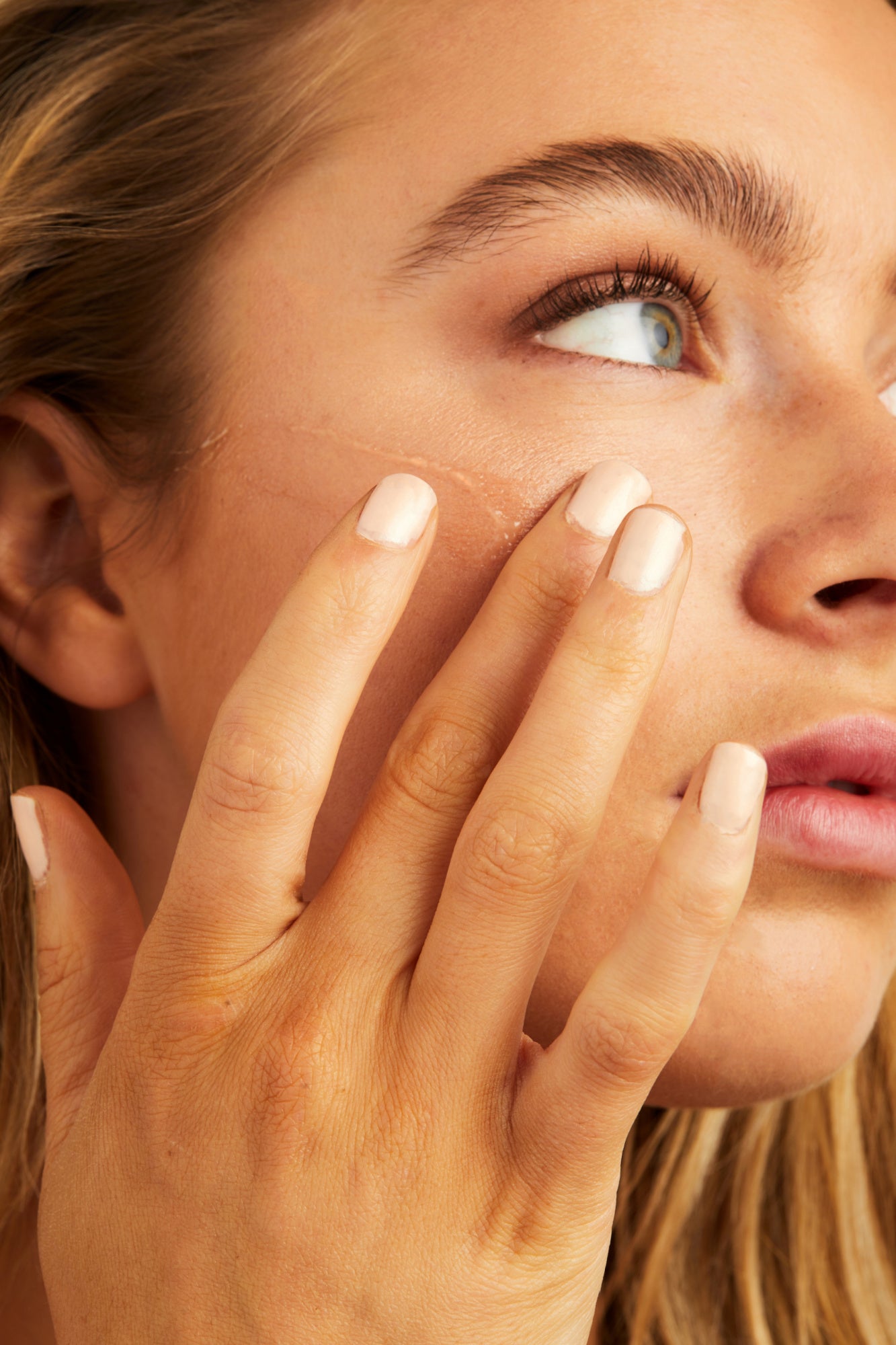 - Rub the cream in your palms until it takes the form of oil.